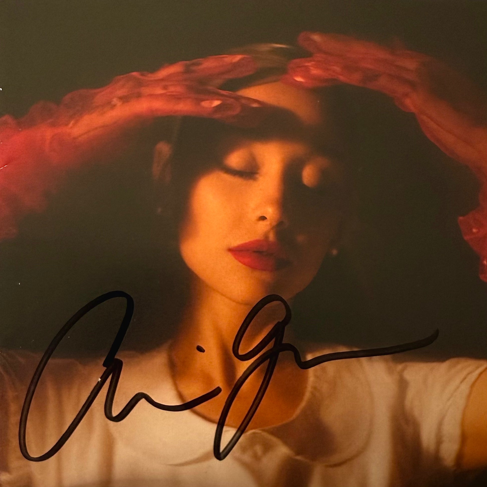 Firmado personalmente por la estrella del pop que ha cautivado al mundo con su talento inigualable. Este álbum es un viaje musical que muestra la evolución artística de Ariana, con canciones que combinan su voz distintiva y su capacidad para tocar el corazón de sus fans.