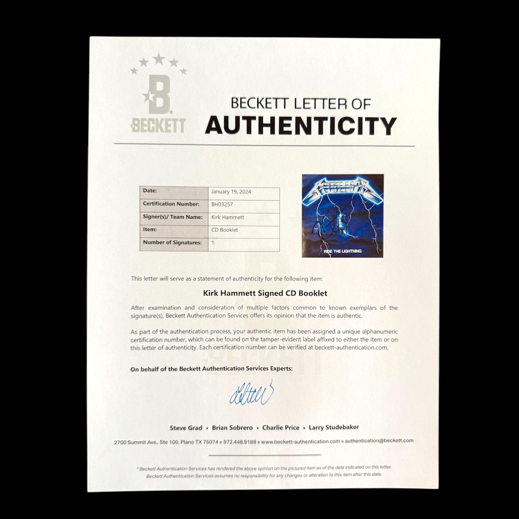 Certificado Beckett (BH03257)