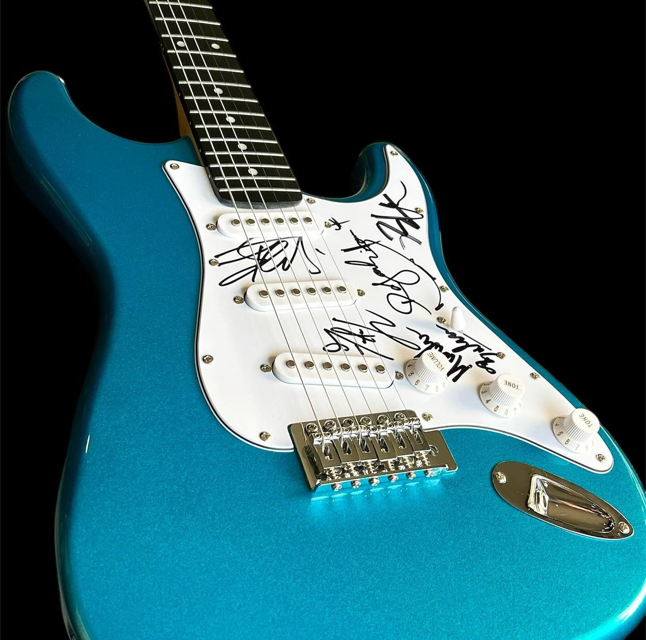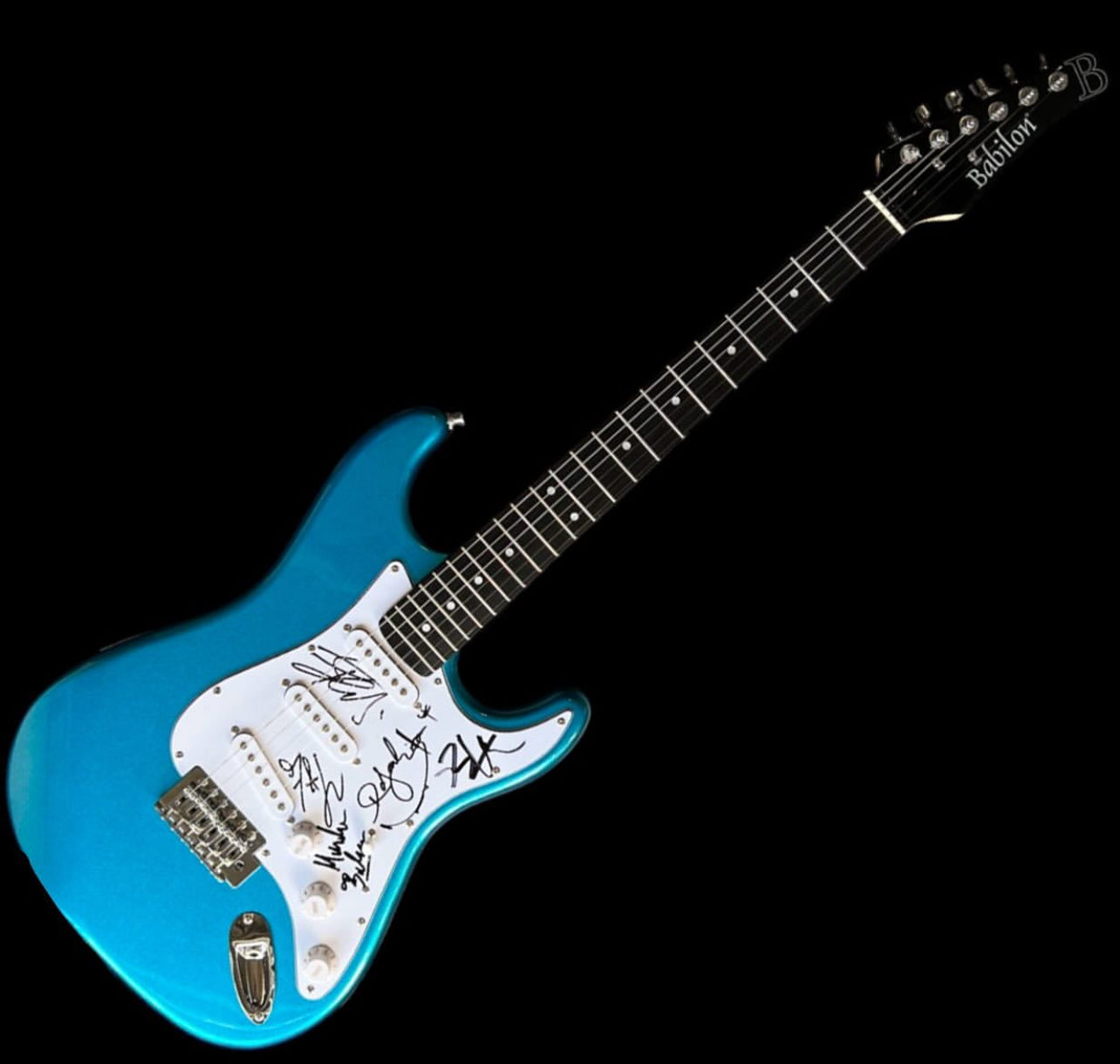Transporta la energía y virtuosismo del power metal brasileño a tu colección con esta guitarra firmada por Angra. Este icónico grupo, conocido por fusionar el metal progresivo con elementos de música clásica y brasileña, ha cautivado a fans de todo el mundo con álbumes como "Angels Cry" y "Rebirth". Su capacidad para combinar melodías poderosas con complejas estructuras musicales ha hecho de Angra una leyenda en la escena del metal.