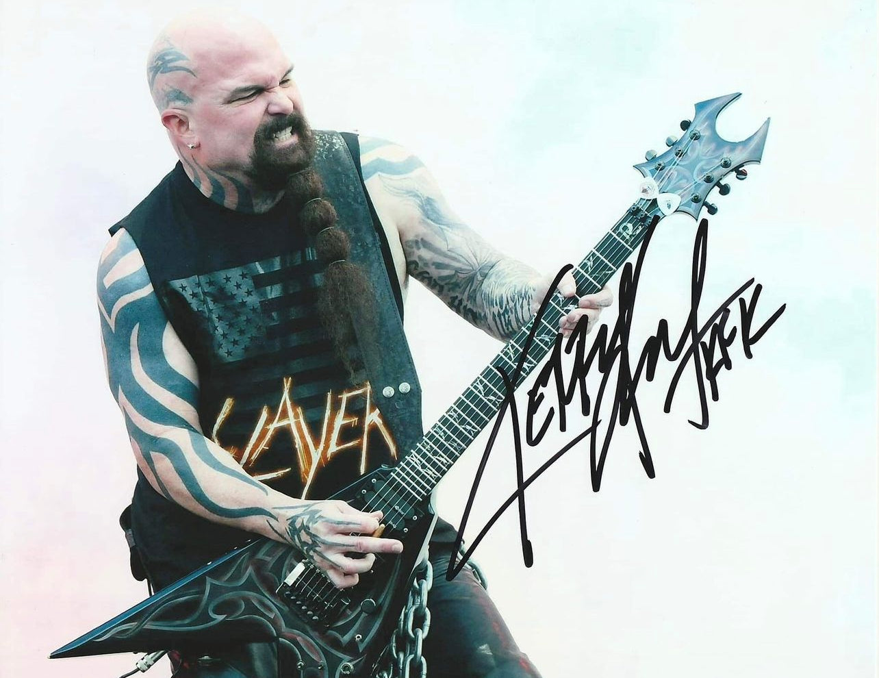 El icónico guitarrista de Slayer, es un tributo a uno de los pilares del thrash metal. Con su estilo agresivo y su dominio inigualable de la guitarra, Kerry ha sido una figura central en la formación del sonido característico de Slayer. Su firma en esta imagen representa la brutalidad y la intensidad que ha llevado a Slayer a la cima del metal extremo.