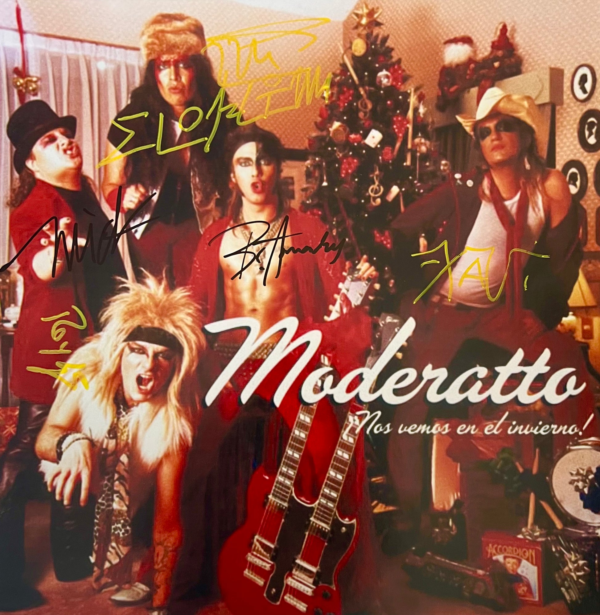 Este artículo de colección está firmado por los integrantes de Moderatto, la banda que ha revolucionado la escena del rock en español con su estilo glam y su actitud desenfadada. Con su mezcla única de covers y originales, Moderatto ha capturado la esencia del rock clásico mientras le añade un toque de humor y extravagancia.