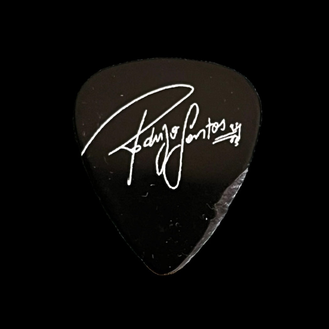 Esta púa de Rodrigo Santos durante su gira con Andy Summers, es un tesoro para cualquier coleccionista. Aunque Santos no escribió canciones para la gira, su púa lleva consigo la energía y el estilo de un artista que compartió el escenario con una leyenda. Un recuerdo auténtico de una colaboración inolvidable.