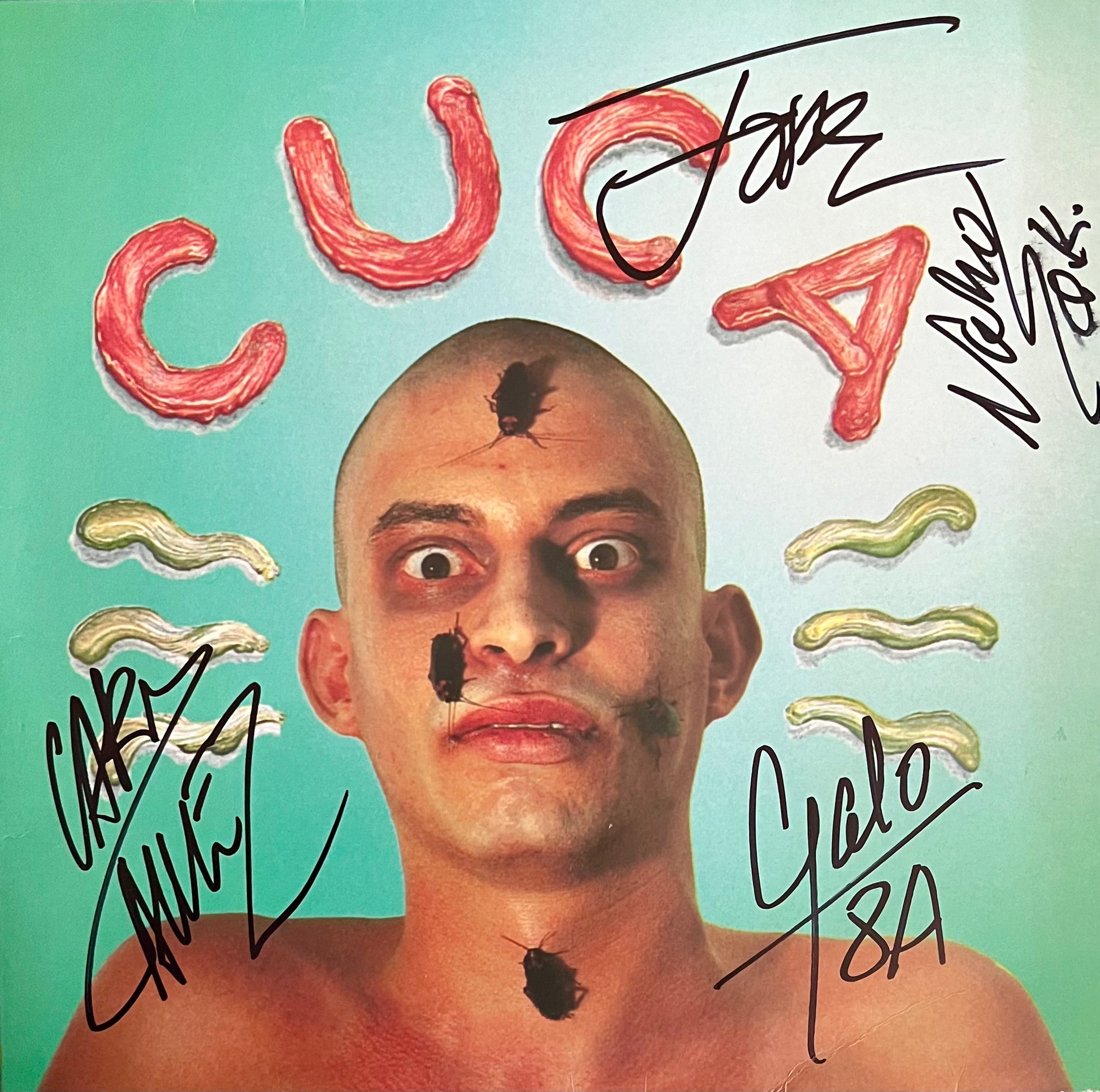 Este icónico álbum, "Invasión de los Blátidos", lanzado en 1992, captura la esencia irreverente y el potente sonido de Cuca. Firmado por todos los integrantes del grupo, este vinilo es una verdadera joya para los coleccionistas.