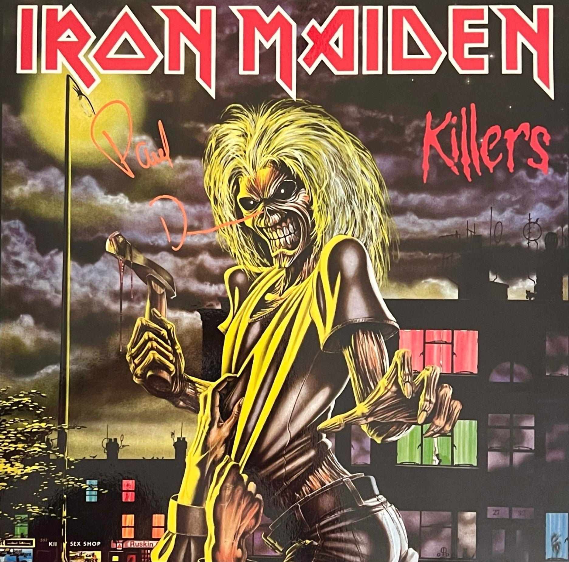 Este vinilo de Killers de Iron Maiden, firmado por el vocalista original Paul Di'Anno, es una pieza imprescindible para cualquier fanático del metal.